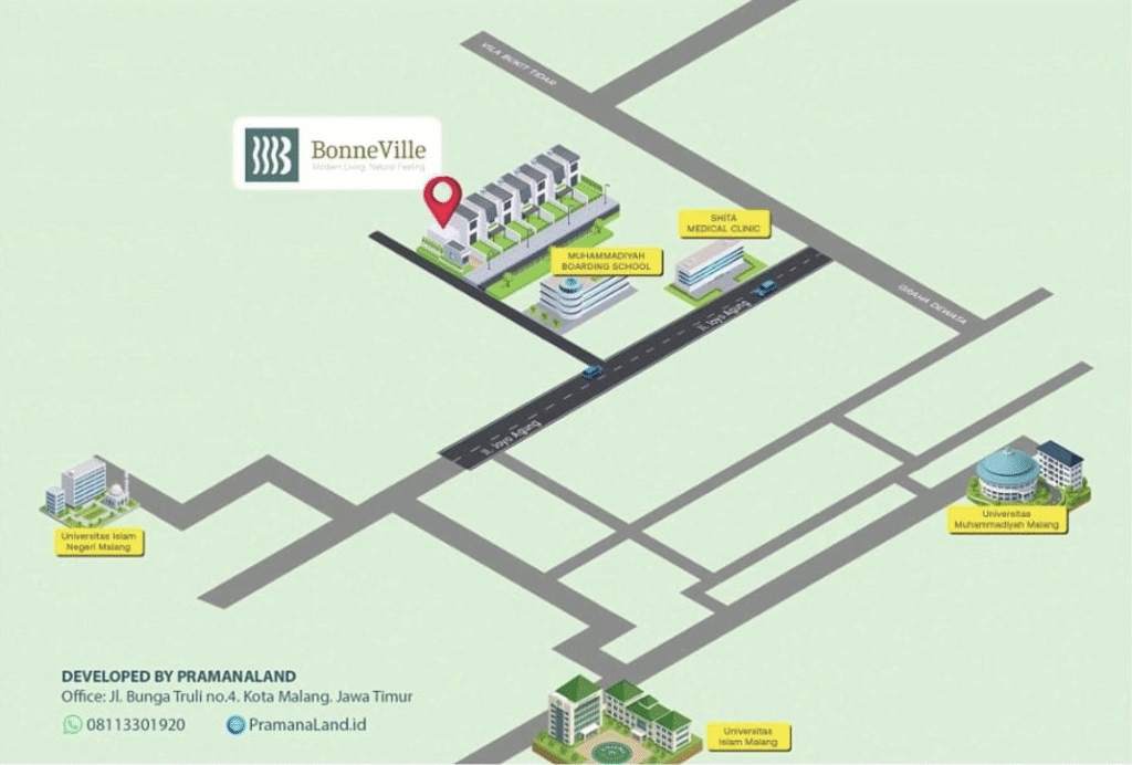 Lokasi BonVille memiliki potensi pengembangan di masa depan. Berada di Kawasan yang tenang dan jauh dari keramaian kota, BoneVille menawarkan keseimbangan ideal antara kenyamanan dan peluang pertumbuhan nilai inverstasi